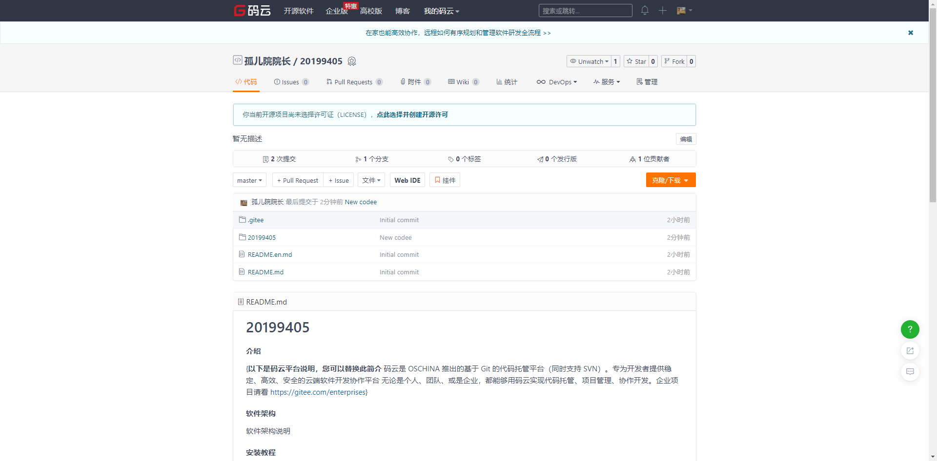 1.1 码云界面
