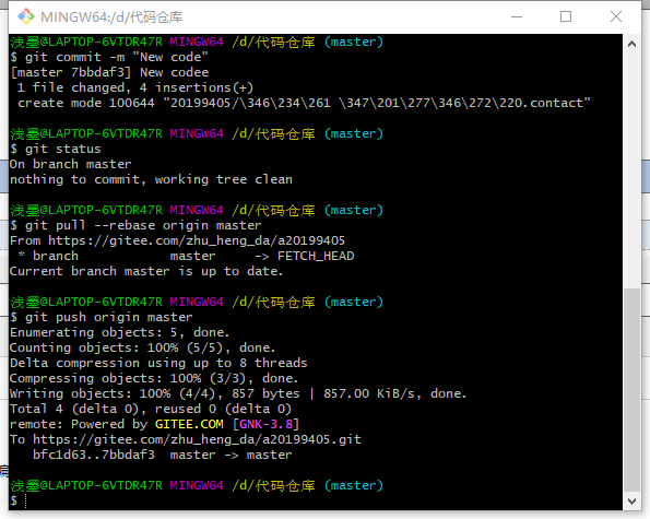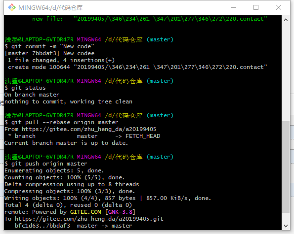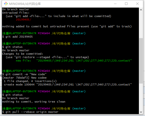 git commit -m "New code"(真正上传新文件)