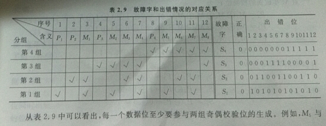 二,如果故障字中有,且仅有一个位为1,则表示校验位中有一位出错,不需要纠正