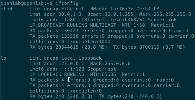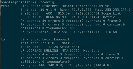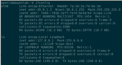 步骤2. 登录主机1,执行ifconfig命令查看Mininet的IP地址,如下图所示。