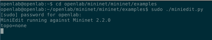 $ cd openlab/mininet/mininet/examples $ sudo ./miniedit.py![]()