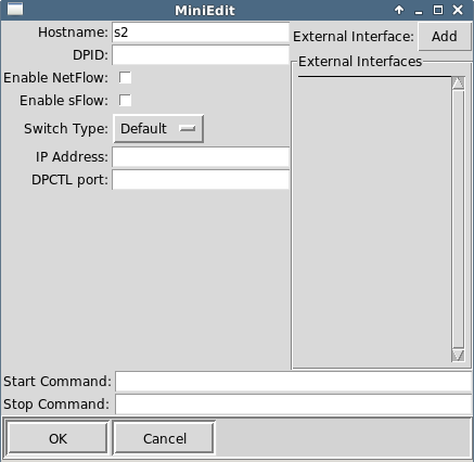 (3)Switch:该交换机工具用于在画布上创建支持OpenFlow交换机,这些交换机将连接到控制器。该工具的操作方式与Host工具相同,用户可以通过在菜单上右键单击选择“属性”来配置每个交换机。