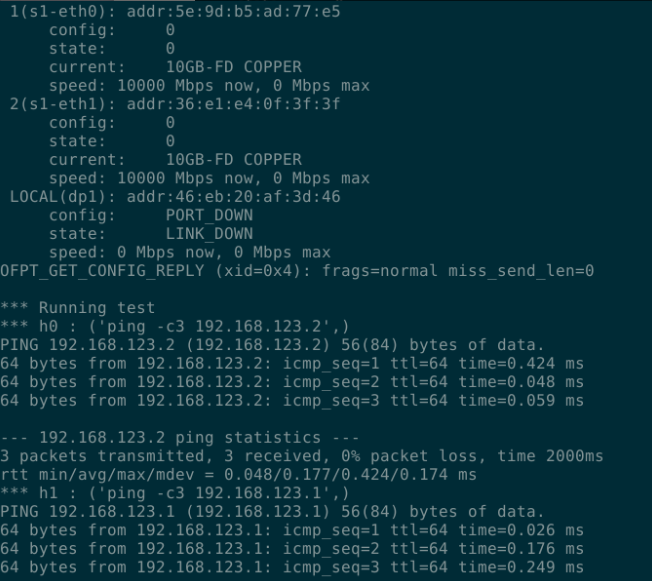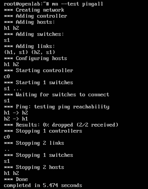 步骤5 安装完成以后,通过简单的命令测试Mininet的基本功能。执行以下命令: