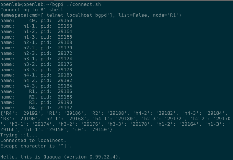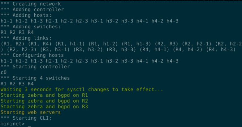 说明:以后直接运行Python脚本即可重现拓扑,重现拓扑后可在命令行直接操作。