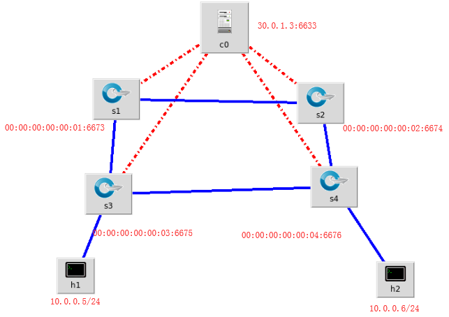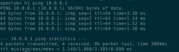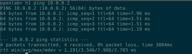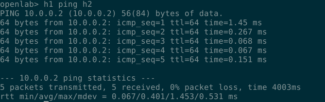 $ h1 ping –c 5 h2 $ sh ovs-ofctl dump-flows s1 $ sh ovs-ofctl dump-flows s2 $ sh ovs-ofctl dump-flows s3 $ sh ovs-ofctl dump-flows s4![]()