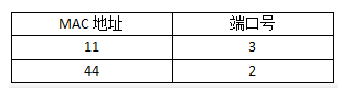 (1) 交换机A学习主机11的MAC地址和端口号,此时交换机A的MAC地址表如下图所示。