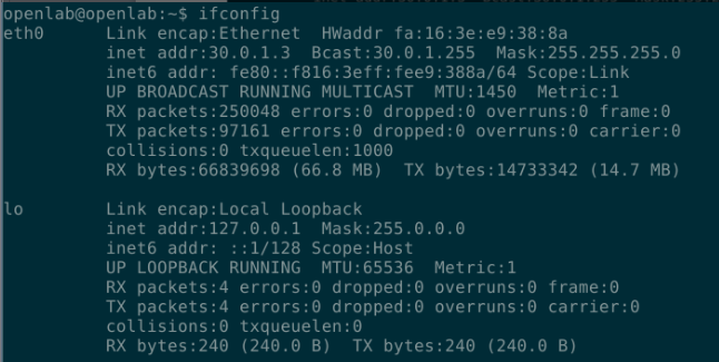登录控制器,单击终端图标,打开终端,执行ifconfig命令查看控制器IP,如下所示。