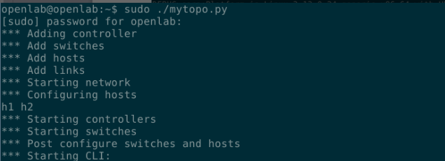 步骤3 登录主机host1,执行命令sudo ./mytopo.py,运行Mininet脚本。