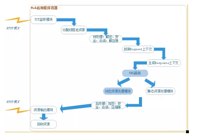 通常在这里具体的容器和开发语言都有自己的高效开发模型,比如JAVA的Servlet,ASP.NET的Web Form,MVC。