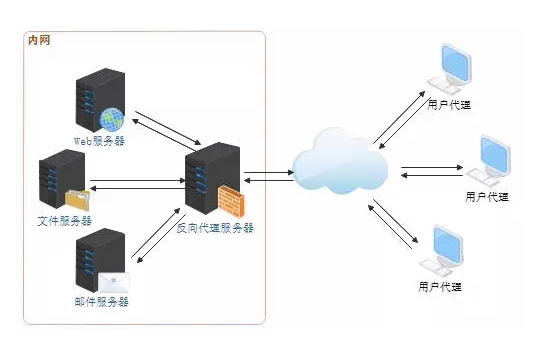 互联网中的请求发送给反向代理,反向代理把请求转发到内网中的服务器。
