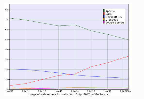 包括Apache、Nginx 、IIS,市场占有率如下:
