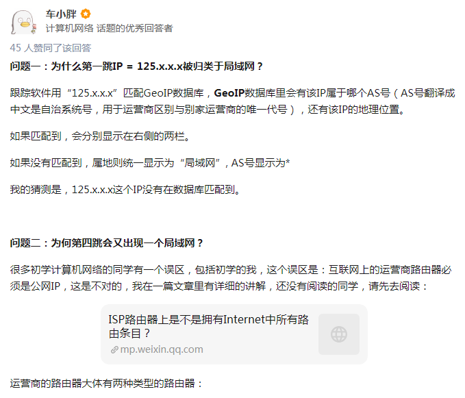 我对这个trace的结果有一些不同的看法,从实际网络部署的角度上看,我觉得其它回答说的都不完全正确: