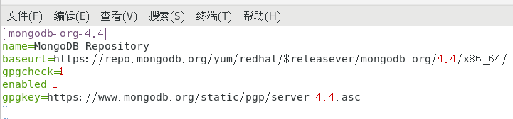步骤1:创建/etc/yum.repos.d/mongodb-org-4.4.repo 文件,内容如下