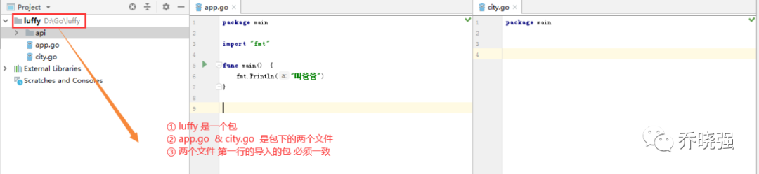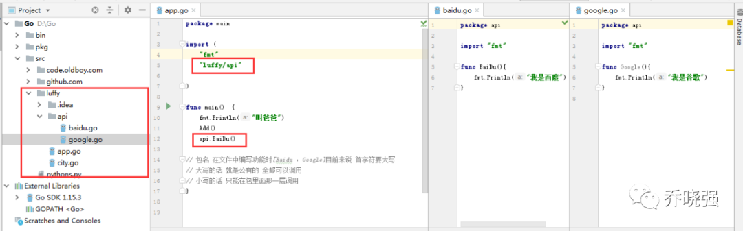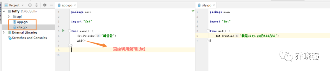 // app.go package main import "fmt" func main() { fmt.Println("叫爸爸") Add() // 直接调用就可以啦 }