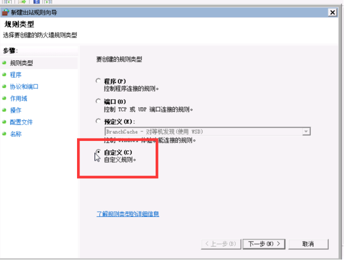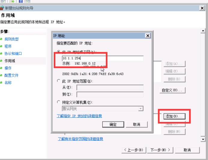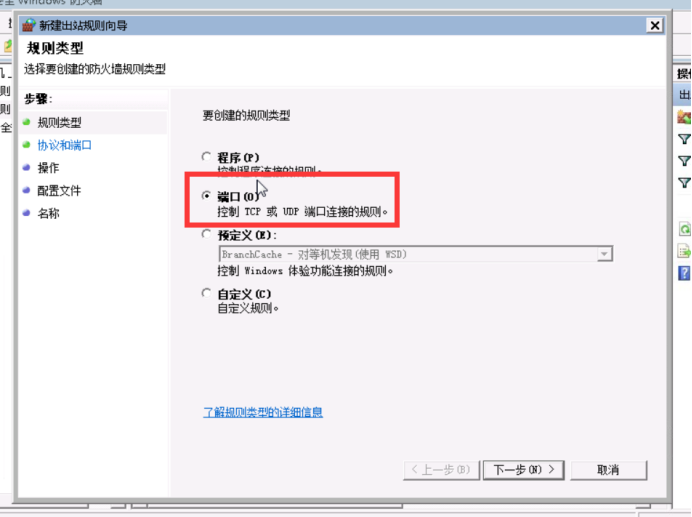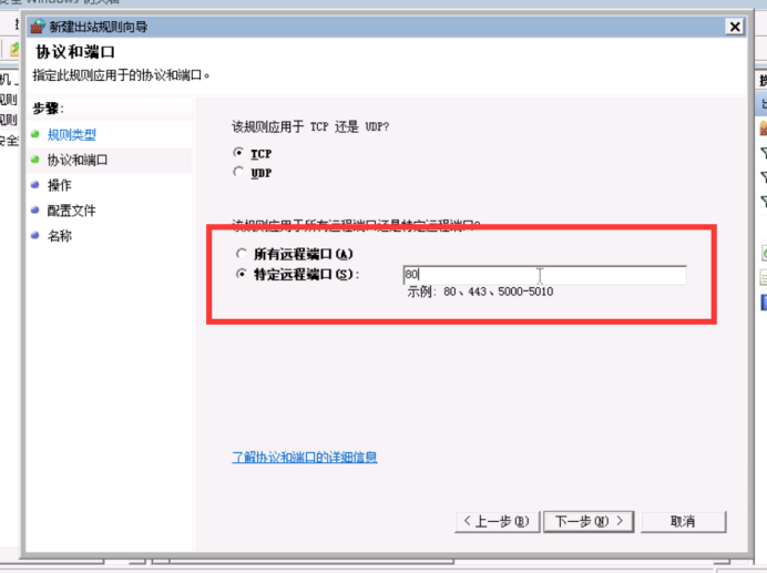 实验步骤二:设置出口规则为“阻止对80端口的TCP连接”