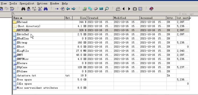 2)尝试通过Winhex手工还原目录项、然后修复簇链表。