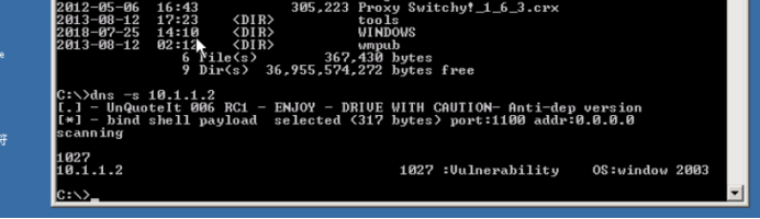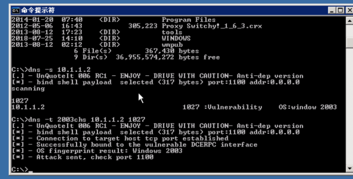 任务二:利用溢出工具溢出目标系统,获取目标系统shell