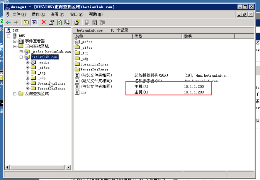 域服务器:Windows Server 2003 IP:10.1.1.200