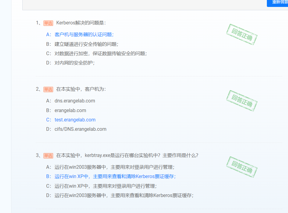 1)掌握利用 Kerberos网络认证协议搭建方法;