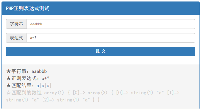 最后奉上php正则测试小程序github地址:https://github.com/a7laya/reg_test