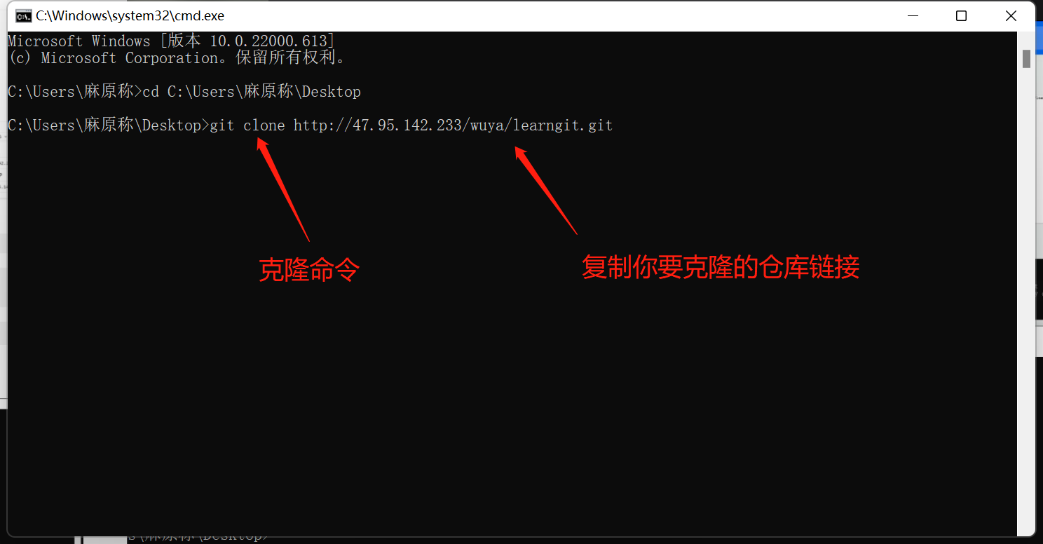 3、输入git clone + 复制的链接 回车