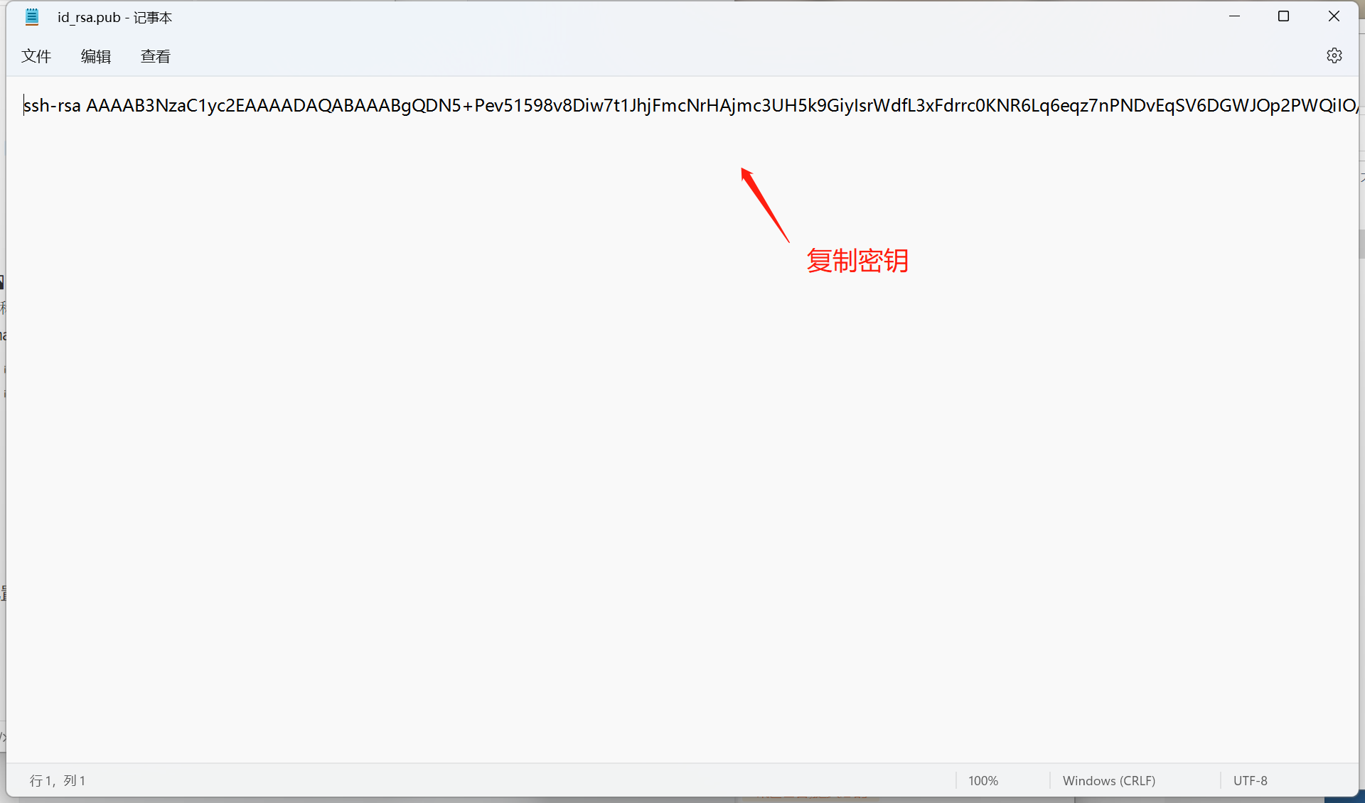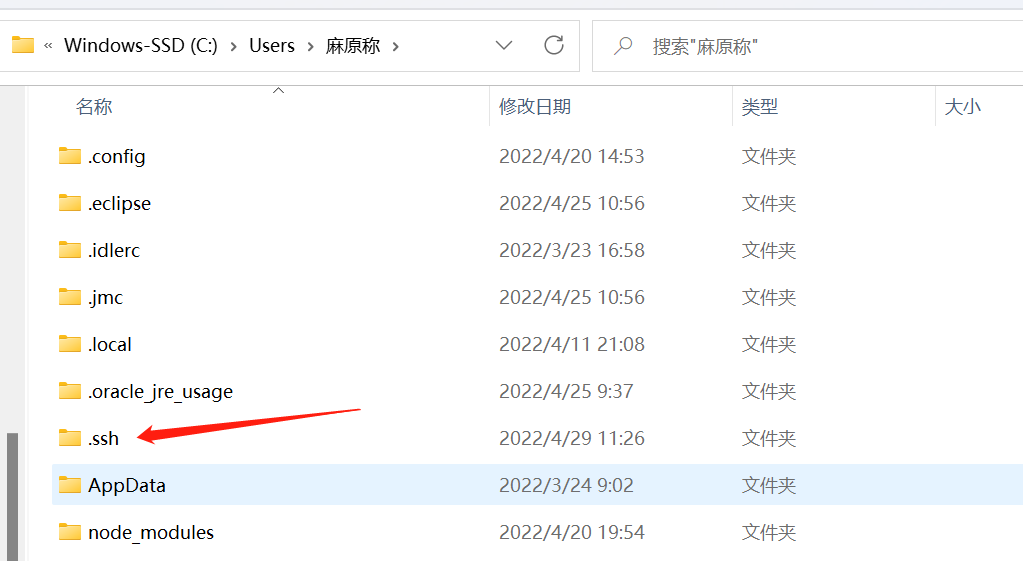 在本地找到生成的密钥,在C盘找到users然后打开,找到你桌面文件进去找到ssh打开,再用记事本格式打开密钥