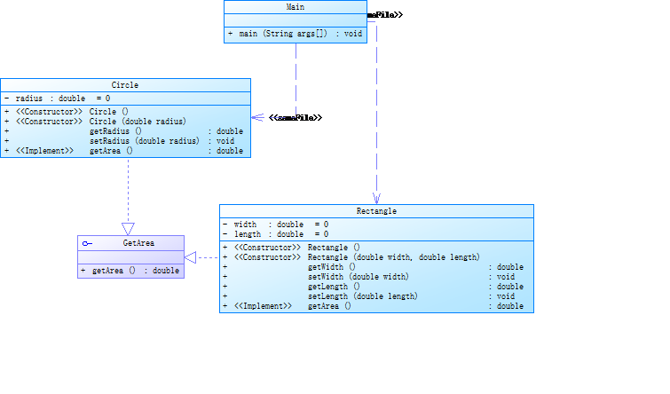 1 interface GetArea { 2 public double getArea() ; 3 }