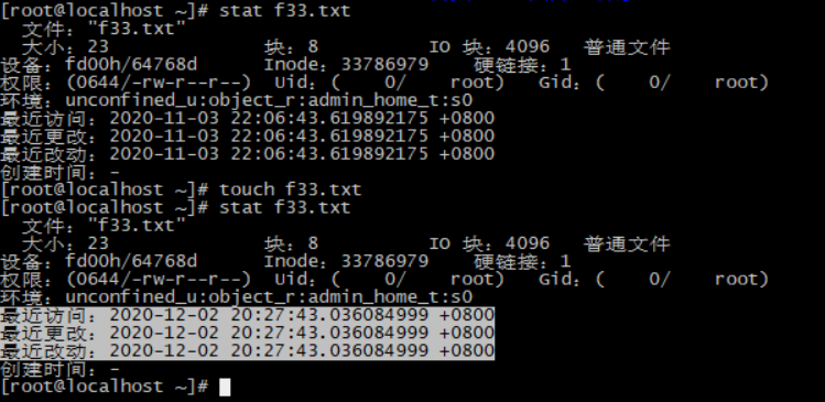 不跟任何选项时三个时间戳都会被更新为当前时间。