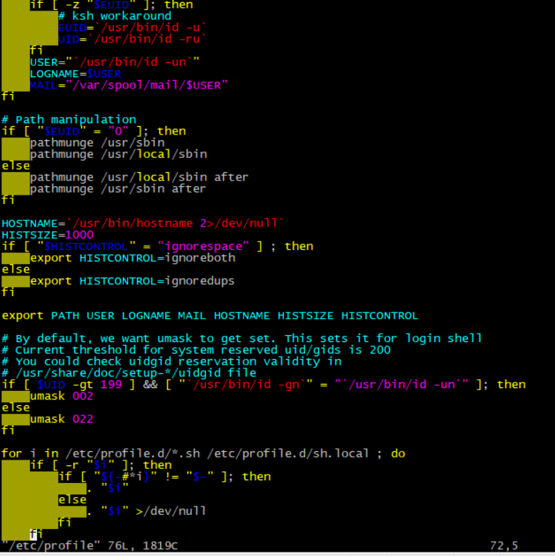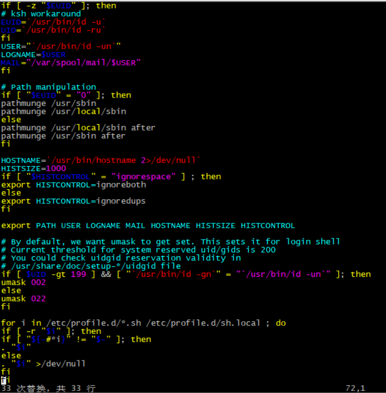 5、复制/etc/profile至/tmp/目录,用查找替换命令删除/tmp/profile文件中的行首的空白字符