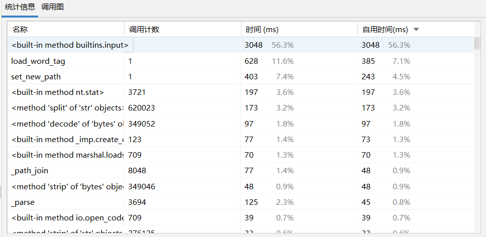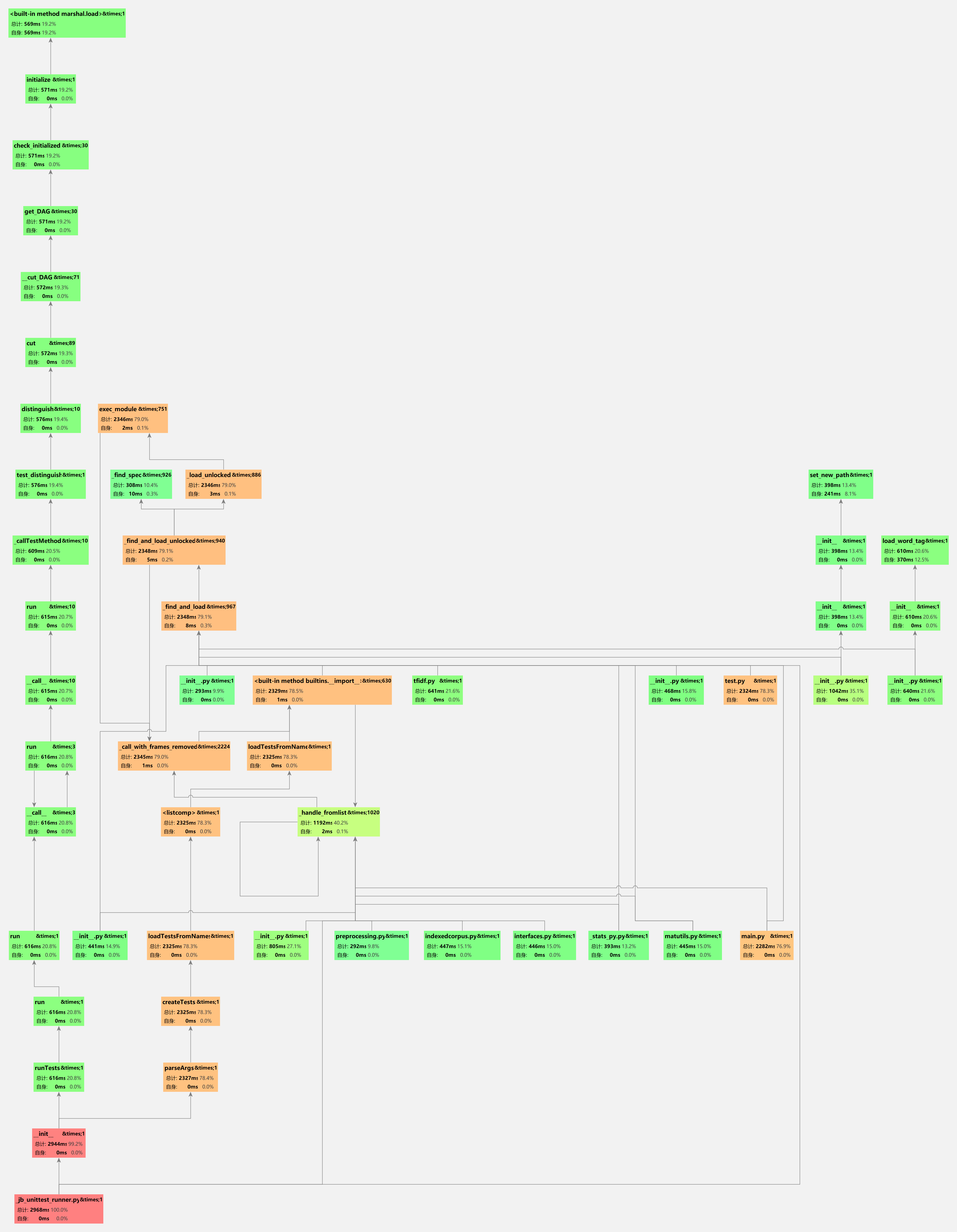 使用pycharm自带的性能分析功能生成性能分析图如下: