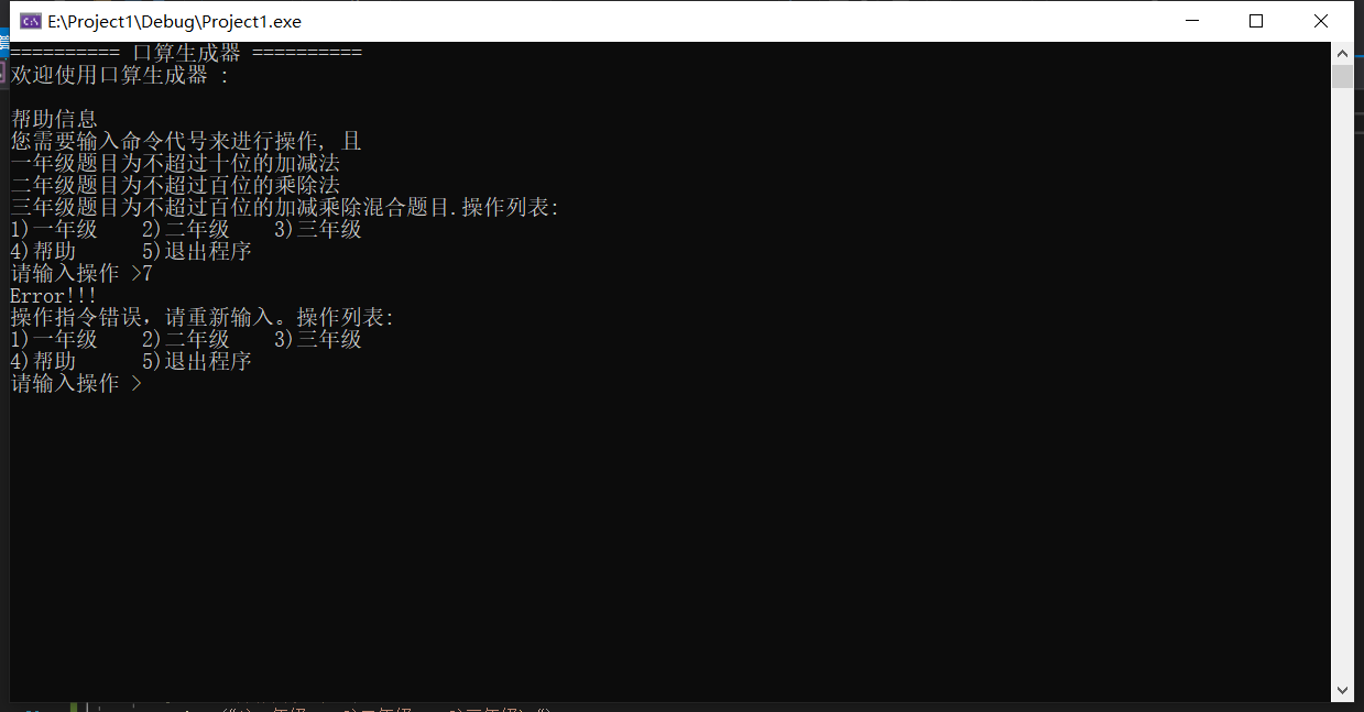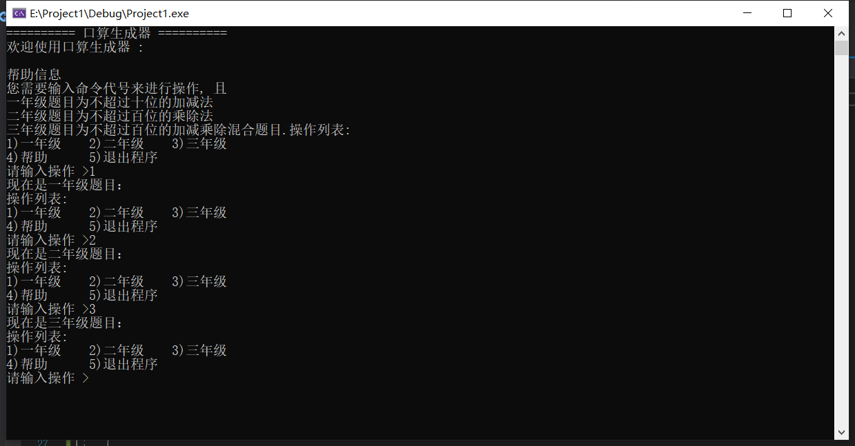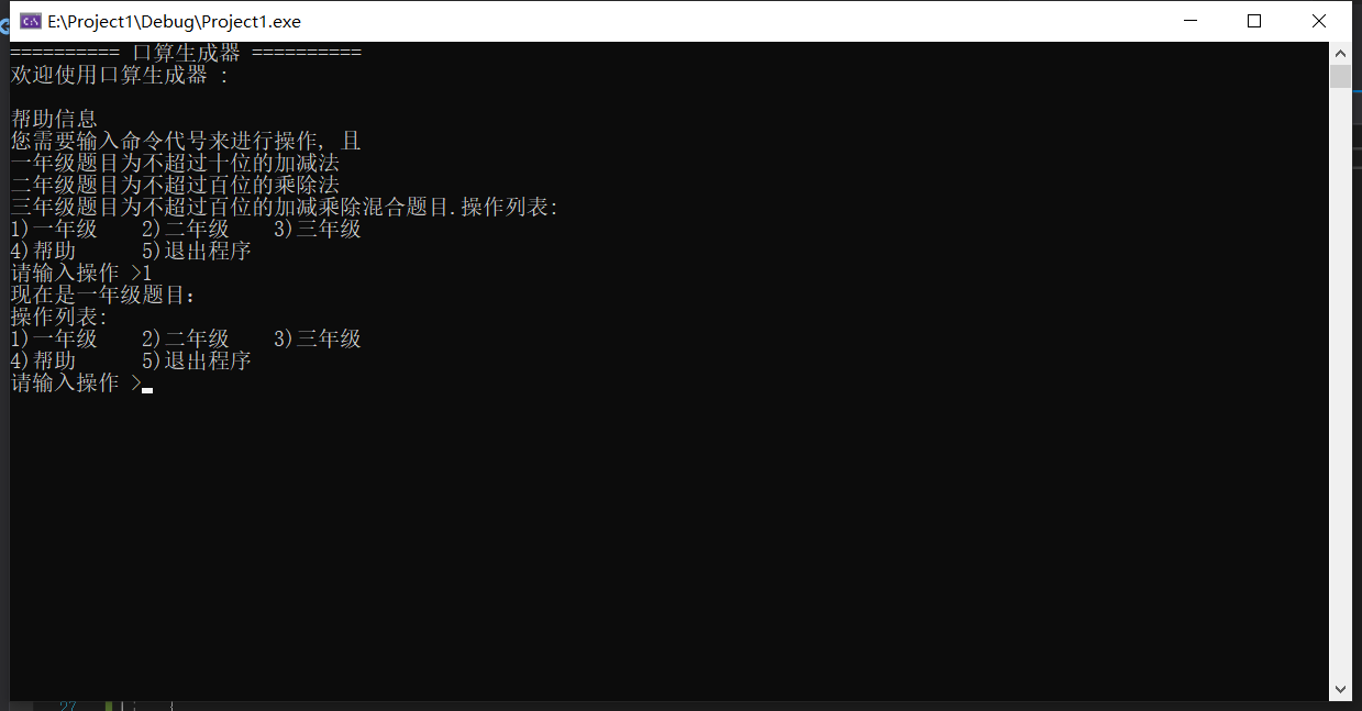 printf("欢迎使用口算生成器 :\n");