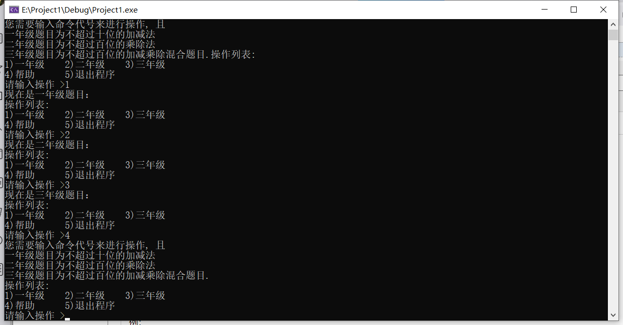 printf("现在是一年级题目:");