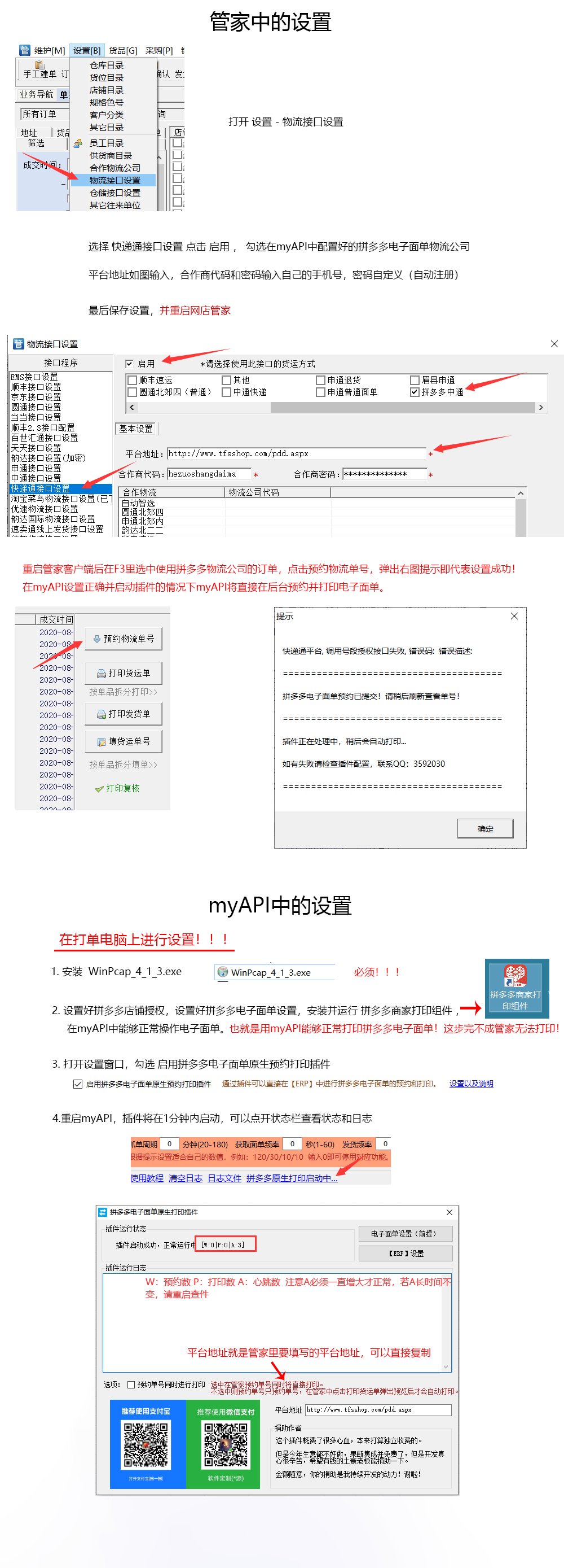 1.必须在myAPI的拼多多电子面单功能中设置好并且可以正常打印拼多多电子面单!这是前提条件!