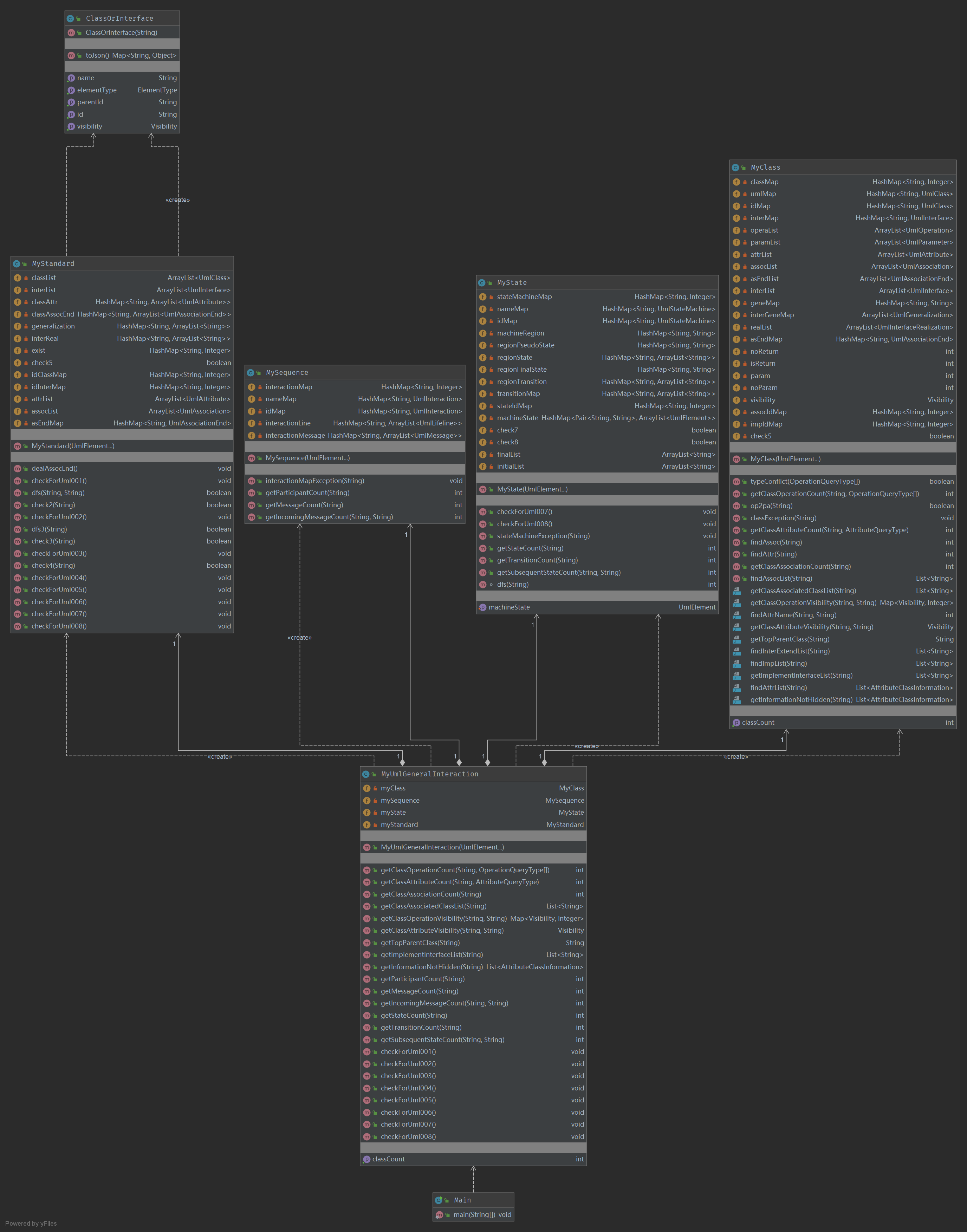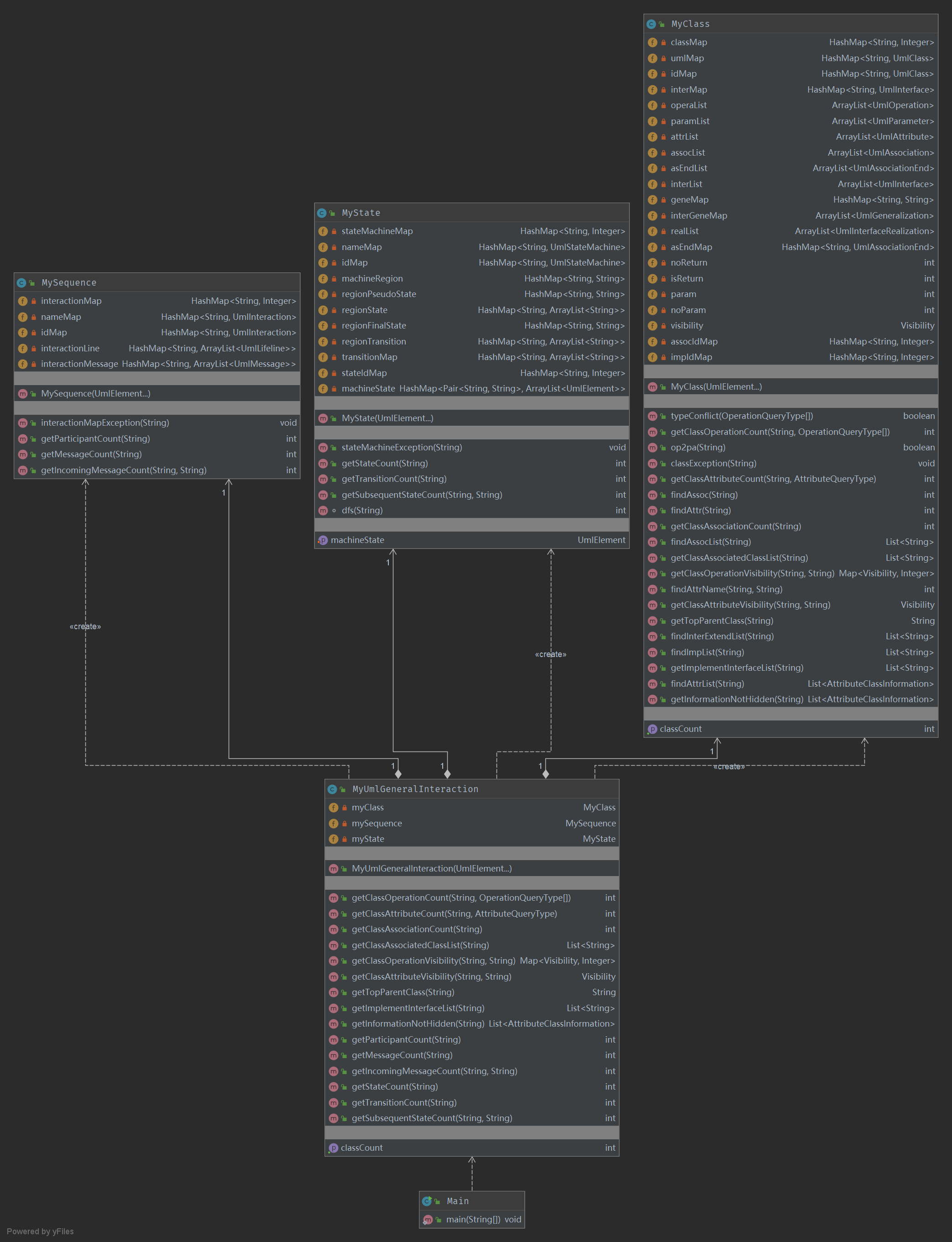 第十四次作业在第十三次作业的基础上增加了对顺序图和状态图的查询。由于作业对代码长度的限制,而且类图、顺序图、状态图所包含的元素并不重合,所以我扩展了三个类,分别对类图、顺序图和状态图进行查询。