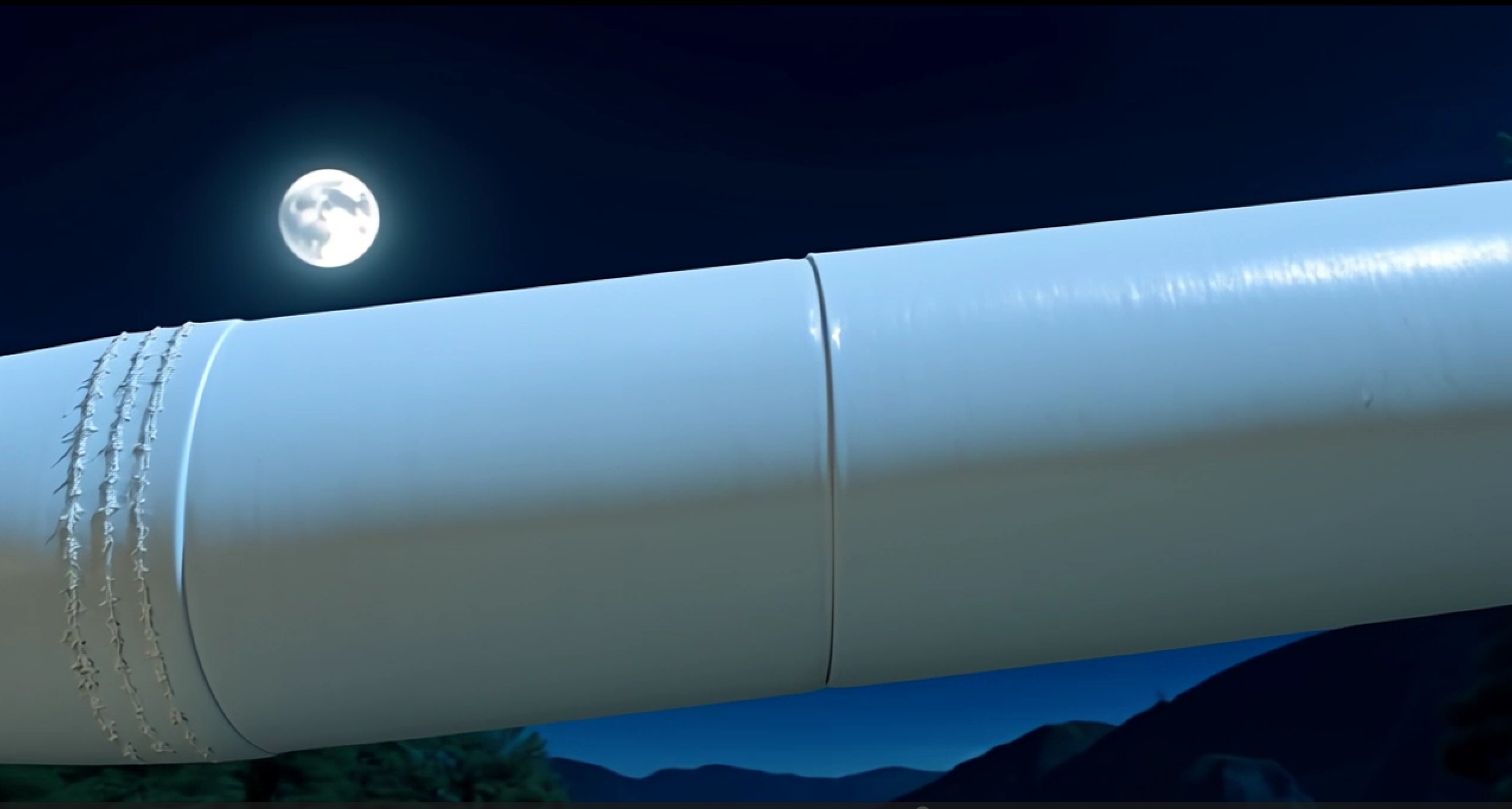 分析:1.6版本可以看出该长圆筒并非水平放置,但其缓慢上下旋转,筒身刻字,但内容与《静夜思》并非一致,且不清晰,整个场景置身于一个月圆之夜,这可能体现出Kling1.6对视频的意境还有创新型较强,但是并没有完美还原内容。 - Kling 2.1
