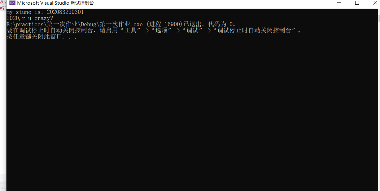 4 printf("my stuno is: 202083290301\n");