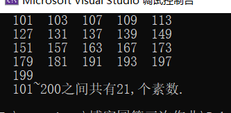 25 printf("\n 101~200之间共有%d,个素数.\n", t);