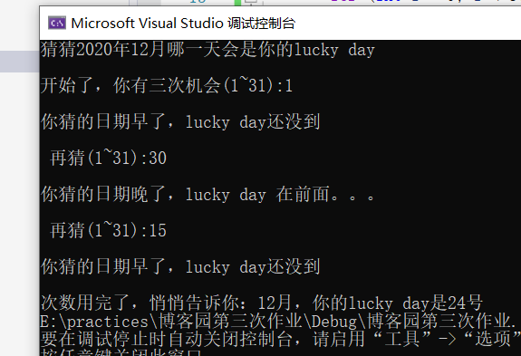 22 else if (guess > n)printf("\n你猜的日期晚了,lucky day 在前面。。。\n\n");