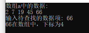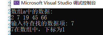 #include <stdio.h> #define N 5 int binarySearch01(int* x, int n, int item); // 函数声明 int main0502() { int a[N] = { 2,7,19,45,66 }; int i, index, key; printf("数组a中的数据:\n"); for (i = 0; i < N; i++) printf("%d ", a[i]); printf("\n"); printf("输入待查找的数据项: "); scanf_s("%d", &key); // 调用函数binarySearch()在数组a中查找指定数据项key,并返回查找结果给index // 补足代码① index = binarySearch01(a,N,key); if (index >= 0) printf("%d在数组中,下标为%d\n", key, index); else printf("%d不在数组中\n", key); return 0; } //函数功能描述: //使用二分查找算法在从x中查找特定值item,数组x大小为n // 如果找到,返回其下标 // 如果没找到,返回-1 int binarySearch01(int* x, int n, int item) { int low, high, mid; low = 0; high = n - 1; while (low <= high) { mid = (low + high) / 2; if (item == *(x + mid)) return mid; else if (item < *(x + mid)) high = mid - 1; else low = mid + 1; } return -1; }