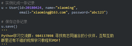 我们看到User类继承自BaseModel,这个BaseModel里,定义了数据库操作的各种方法,譬如我们使用的save函数,也可以放在这里面的。所以我们就可以来写一下这个BaseModel类