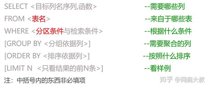 本篇文章关于SQL语法的部分会讲到条件子句(where子句)、分组查询(group by子句和having子句)、结果呈现(order by和limit)和连接查询(left/right/inner join)。