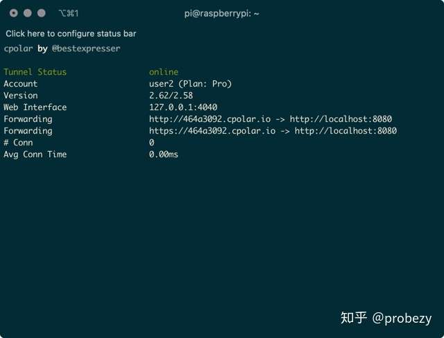 nohup cpolar start-all -config=/home/pi/.cpolar/cpolar.yml -log=stdout &11. 验证后台是否运行正常