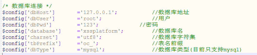 2、在web根目录下有一个xssplatform.sql,在phpmyadmin中创建好数据库后导入库。
