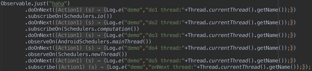 如上图,首先指定了subscribeOn的线程为io线程,然后又指定了计算线程,打印日志