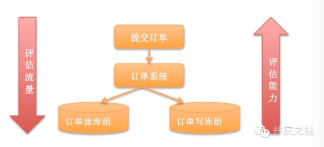从上到下评估流量,从下至上评估能力:发现一次订单提交 有20次数据库访问,读写比例高峰期是1:1,然后就跟进数据库的能力倒推系统应该放入的流量,然后做好前端的异步下单,让整个流量平缓的下放到数据库。
