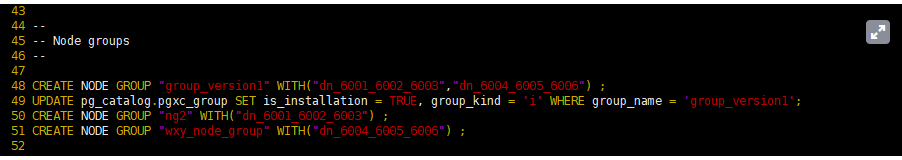 (4)发现db.sql中没有node group和fillfactor等关键信息