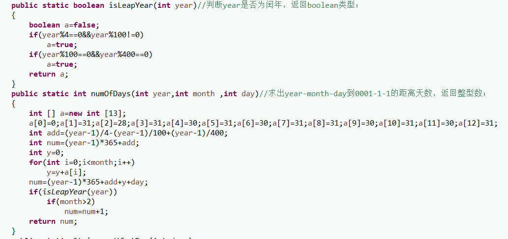 第二次pta中难度明显的提升,这次的代码是第二题,学会使用一个类里面有多个事件。每一个事件不仅这个题可以使用,是不限定的,没有限制的,是对每一年都能判断是否为闰年,可以判断每一个时期是星期几。是可以拿去别的类来使用。总结的时候发现在逐步的面向对象,而不是在面向程序。而此次代码出现的错误就是在计算总天数时会包含闰年和平年,在计算有多少个闰年时出错较多,问题较大。经过不断的尝试完成了代码。