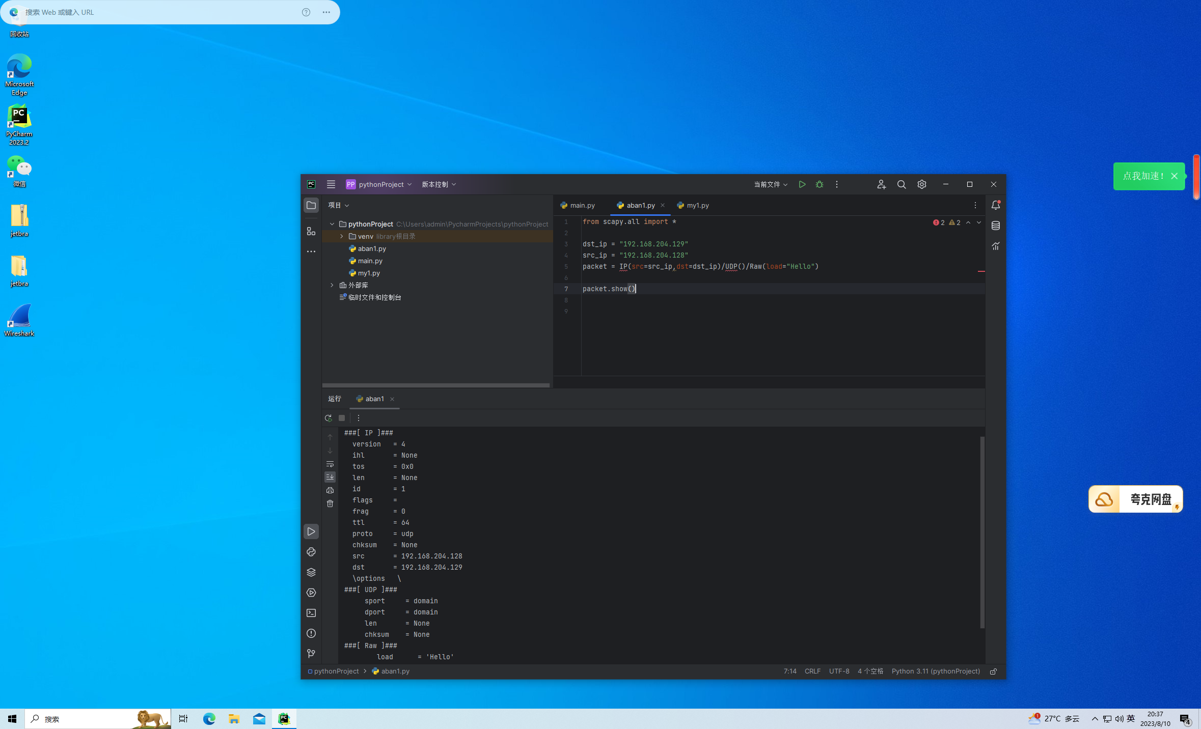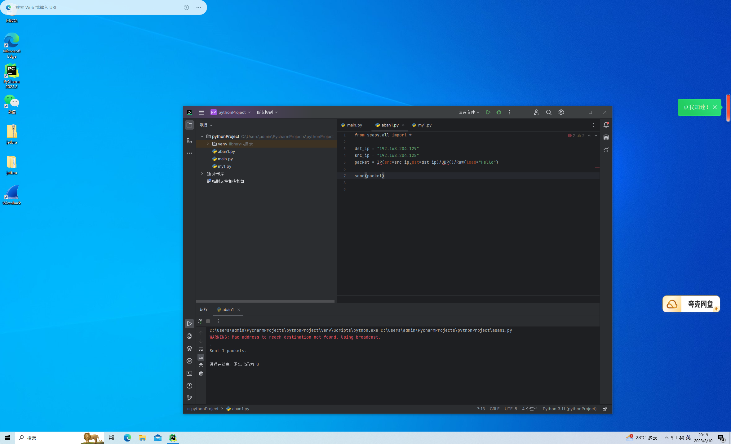 scapy构造包,发包,收包