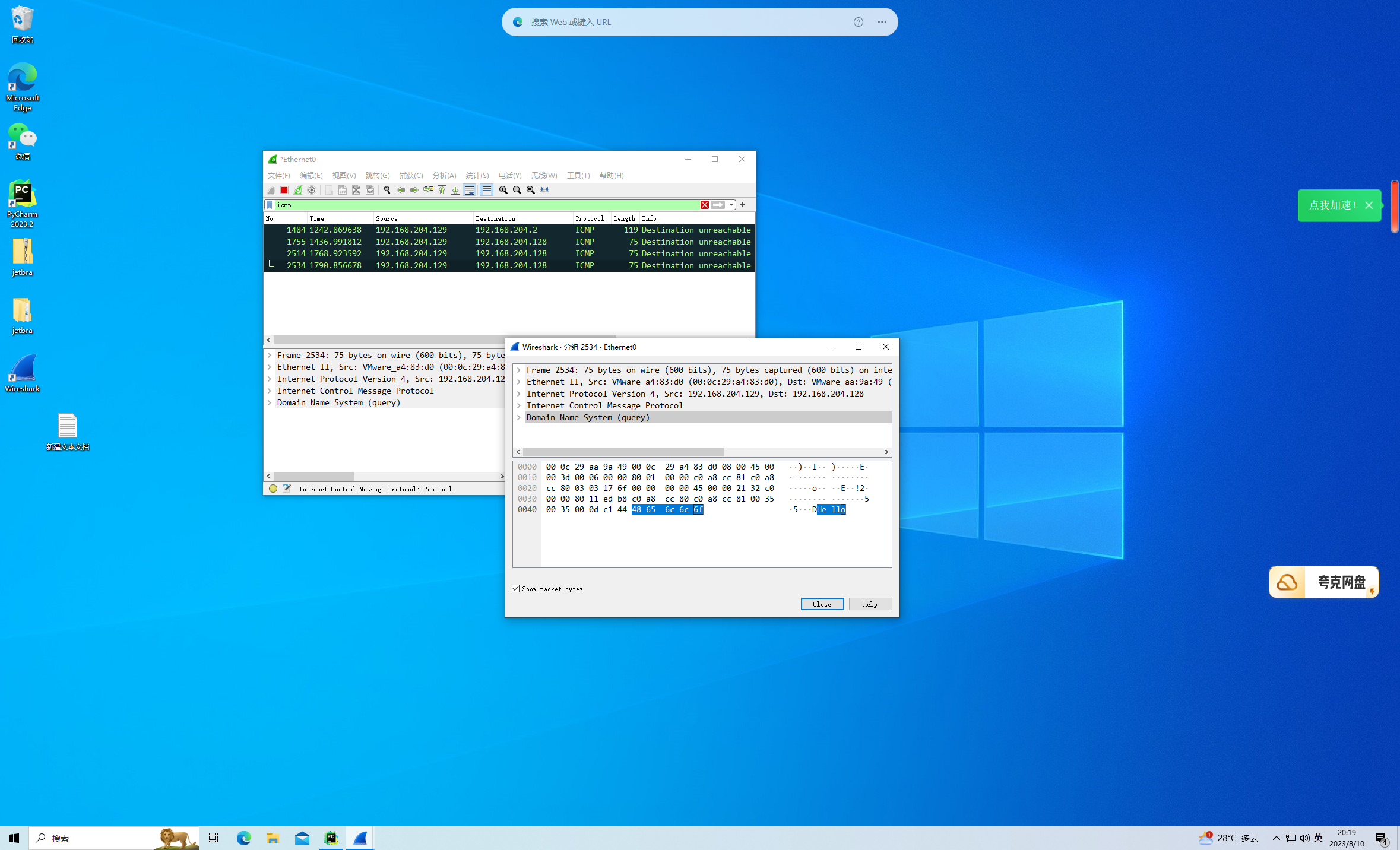 3、利用wireshark查看收包内容